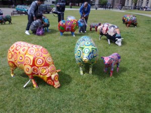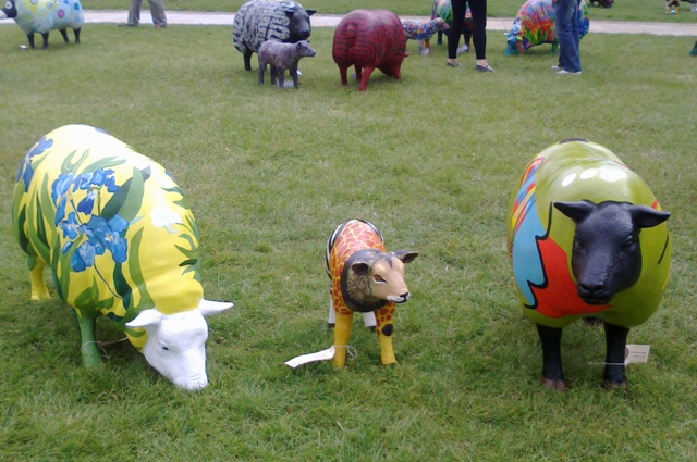 The animals turned out to be a flock of more than 150 life sized resin sheep painted in styles inspired by famous artists such as Van Gogh, Picasso and Andy Warhol. They were decorated by small groups of pupils, aged 5-16, from local schools to celebrate the refurbishment of the Cathedral Green.