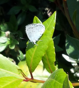 Holly Blue. It could be a girl’s name, but actually it’s a butterfly. Little blue butterflies have flitted through my garden at great speed, refusing to settle, every spring and summer since I