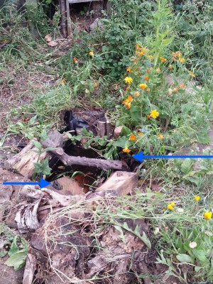 He’d been concerned about how tiny froglets would get out of the flexi bucket and so had gently and carefully installed a ramp for when the day came that they needed it. The tadpoles barely noticed, but it clearly drew the attention of some adult frogs. Apparently five popped out at one point, but by the time I went to see what was holding my husband’s attention only two were still in evidence (see pic above with blue arrows pointing to frogs!).