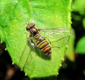 Instead let’s look up at the ceiling, as I clean my glasses so I can see to read in bed. A hoverfly has decided that this is a good place to spend the night. It’s one of the smaller kind, perhaps the marmalade one. Most hoverflies don’t even have common names, so it’s hard to say – but it’s flying up near the ceiling in the way I’ve seen the marmalade ones do before. All of a sudden one of those spindly legged, almost weightless cellar spiders runs toward it,